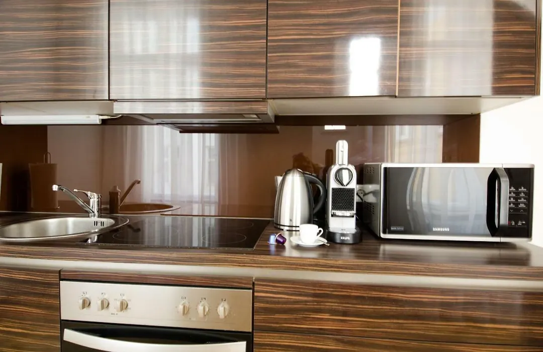 Кухня укомплектована кавоваркою, а також мікрохвильовою піччю, електрочайником і холодильником, необхідними для самостійного приготування їжі. Апартаменти розташовані досить близько до автобусної зупинки Kettenbrueckengasse.